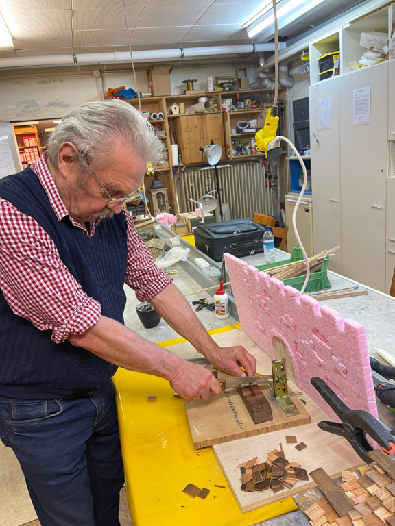 Unser Kursleiter wird von dem erfahrenen Krippenbauer Peter Steininger in den Kursen unterstützt.